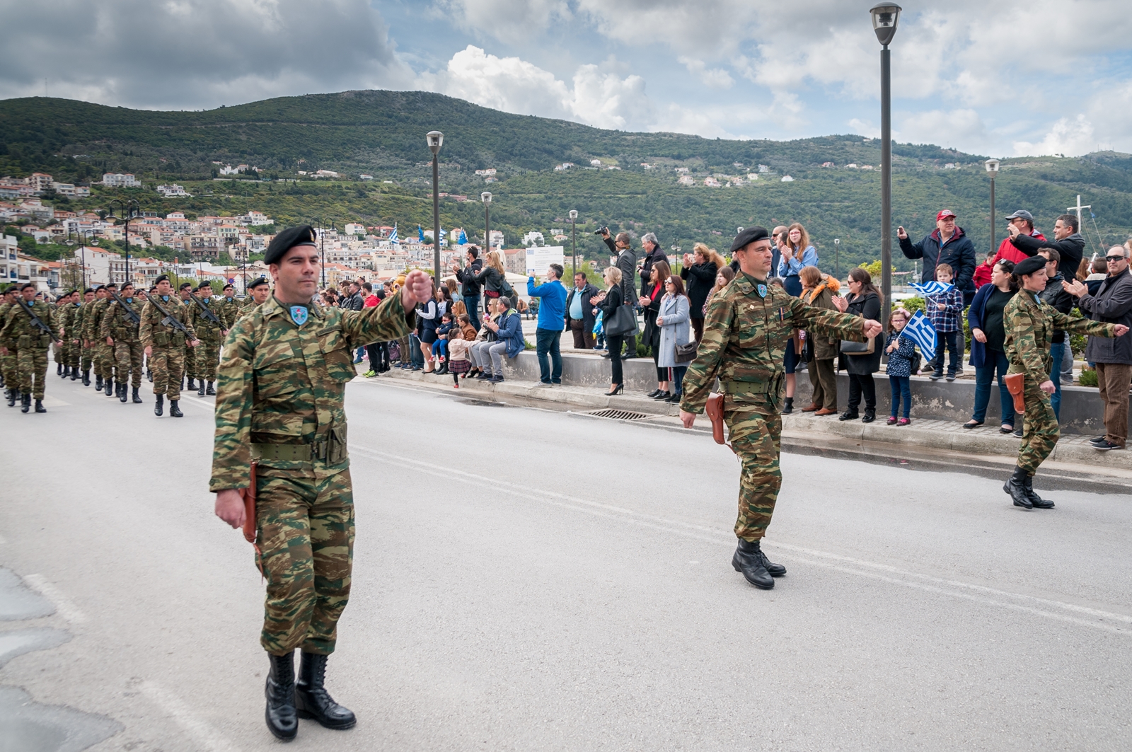 Με μια μεγάλη μαθητική και στρατιωτική παρέλαση στην παραλιακή Λεωφόρο Θεμιστοκλή Σοφούλη κορυφώθηκαν την Κυριακή οι εορτασμοί για την εθνική επέτειο της 25ης Μαρτίου στην πόλη της Σάμου!